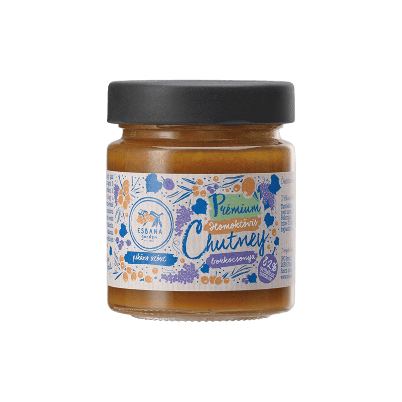 Esbana saját recept alapján készített prémium minőségű chutney bio minőségű homoktövisvelőből és a szőlő finom mustjából. A homoktövis savanykás íze a szőlő finom zamatával egészül ki. Alkoholt nem tartalmaz.
