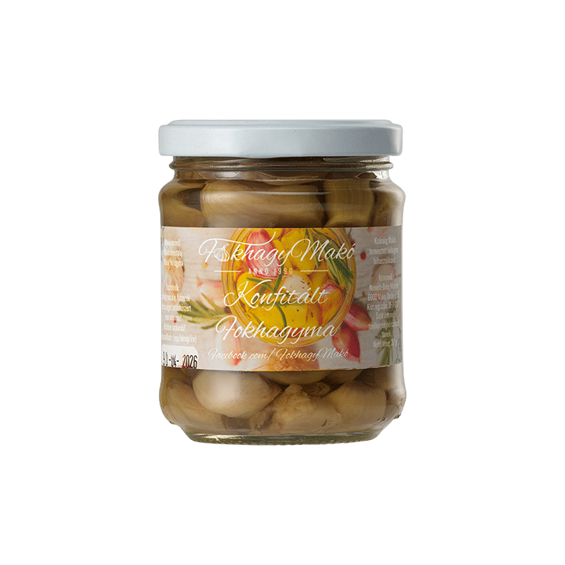 Egészben konfitált fokhagyma. Ajánljuk pirítósra, főzéshez, levesekbe, vendégváró falatokhoz, házi sajtkrémekhez.