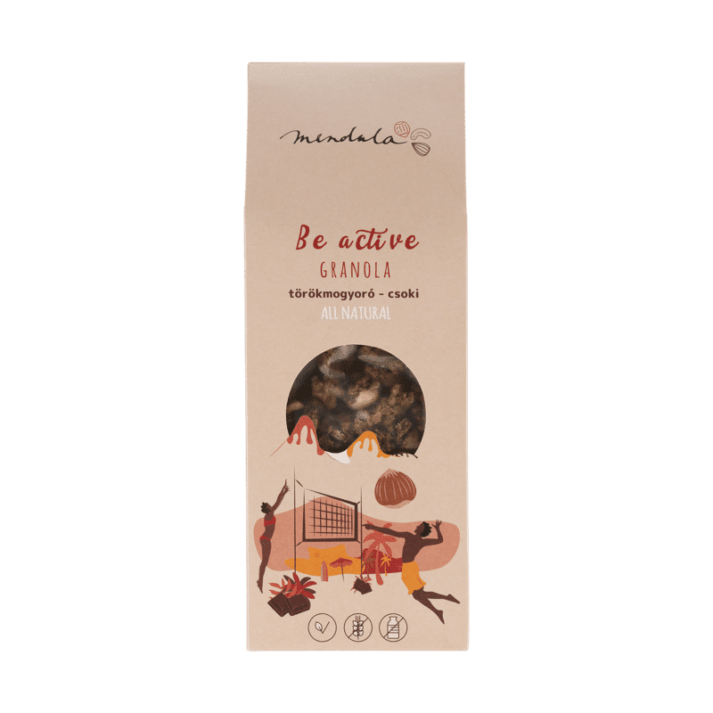 Törökmogyorós-csokis granola termékünk a telt ízű törökmogyoró és a belga étcsoki párosa. Ropogós, csokis falatok, olajos magok, kókuszchips, finom fűszerek. Többféle diéta és ételérzékenység esetén is nyugodtan fogyasztható, vegán, gluténmentes, laktózmentes, paleo és tejfehérjementes termék.